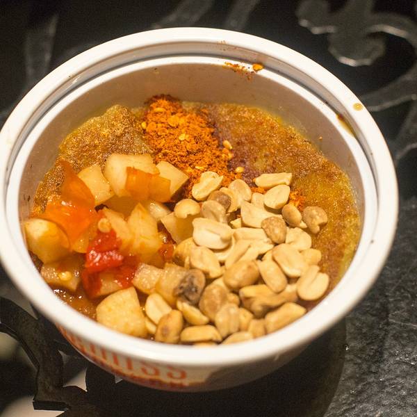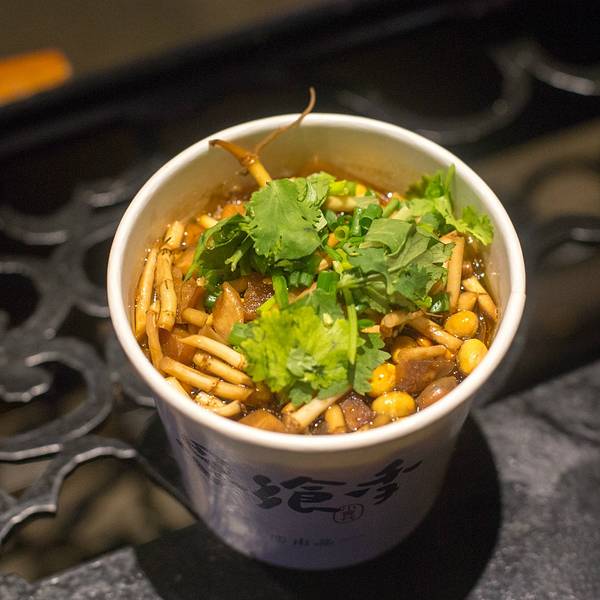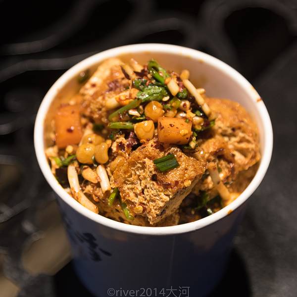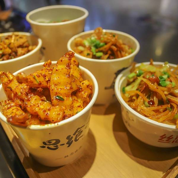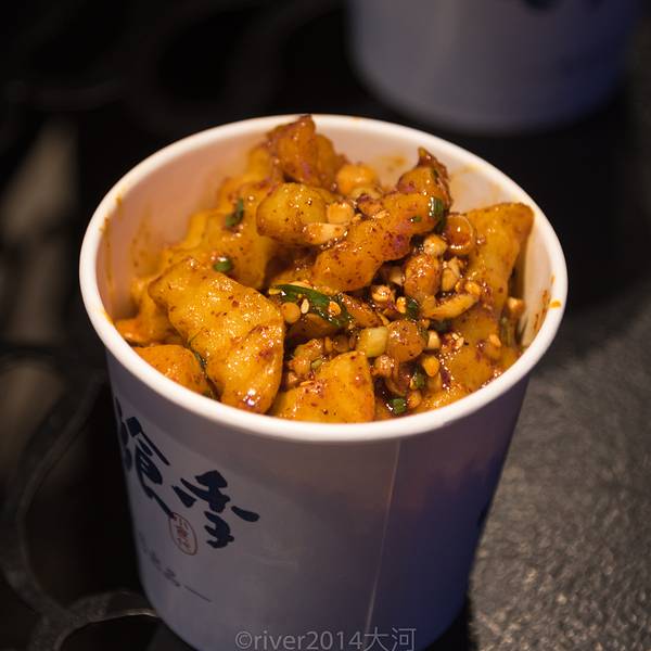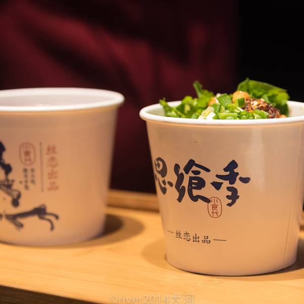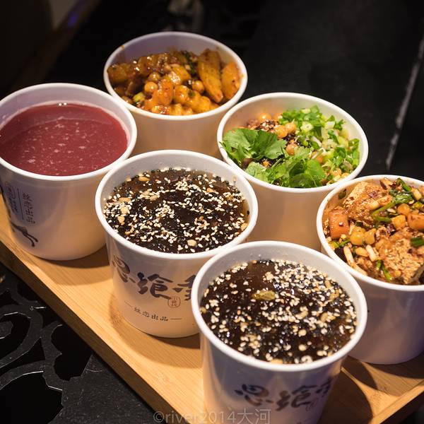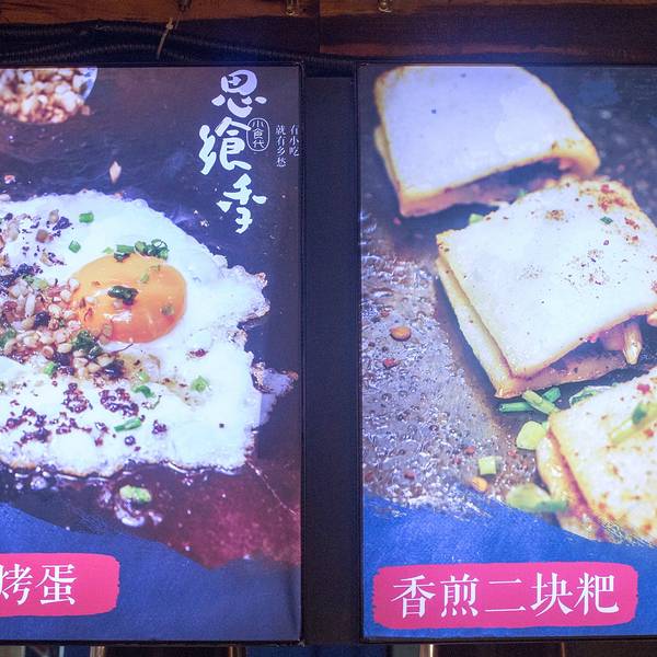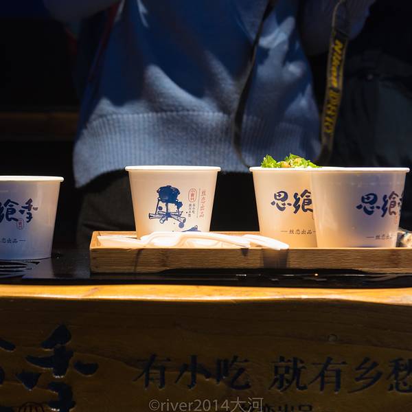 参过结束以后,先回酒店歇息了一会,便打算出来寻食,但是又不想走太远,索性还是在酒店旁的南国花锦购物中心寻食了。在购物中心的负一楼走了一圈,都没找到理想的美食。 最后不经意之间终于看到了一家名叫思飨季的餐厅,这家路边小吃的招牌很有意思,叫做“有小吃,就有乡愁”。店面不大,却五脏俱全,而且颇富时尚气息,黑色的底色、明亮的灯光加上忙碌的店员构成了一幅和谐的画面。老鹰趁着店员休息的空隙,特意挤上前去聊了两句。 原来,思飨季这三个字的店名,背后却有着深层次的含义。思,代表品牌对本土小吃的重现和象征;飨,即体现贵州人的热情好客又表露出对家乡美食的依恋;季,则是回归于传统二十四节气对食材的考究。作为一家主打贵州省个小吃的集散地。在这里,贵阳的炒酸粉和炒卷皮、遵义的拌米皮等美食应有尽有,让人足不出路边,便尝尽贵州小吃。最让老鹰为之期待的是,这里还有销售织金的臭豆腐。位于毕节市下辖织金县的臭豆腐名声还是挺大的,老鹰也是期待久矣,没想到在这里品尝得到了。那迥异于长沙臭豆腐的美味,让老鹰一时之间还真有些爱不释嘴了呢。