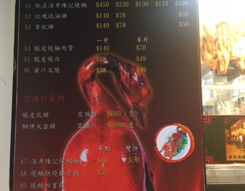 香港这里好吃的深井烧鹅很多啊,朋友推荐来这里的陈记吃,味道是真的挺不错的但是香港这里的物价还是不低的性价比不算很高的。