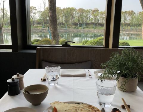 晚上酒吧,鸡尾酒不错,壁炉也有特色。早餐也在此,风景优美、整洁,所选中式早餐精致,食材不错。细嚼慢咽中品味生活之美,不亦乐乎