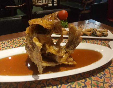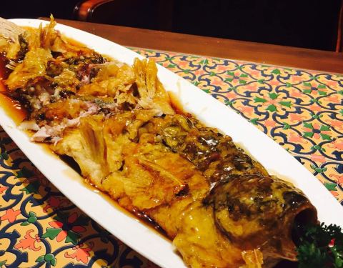糖醋鲤鱼不错,皮蛋粥不太好喝。环境不错。