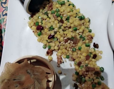 从火车站步行1.2km,来这儿吃济南传统风味。点了酥锅、爆三样、老厨白菜、老济南甜沫和油旋。老厨白菜卖光了,除了油旋儿子不感兴趣,只我一人猛吃猛喝,幸亏合我口味儿。