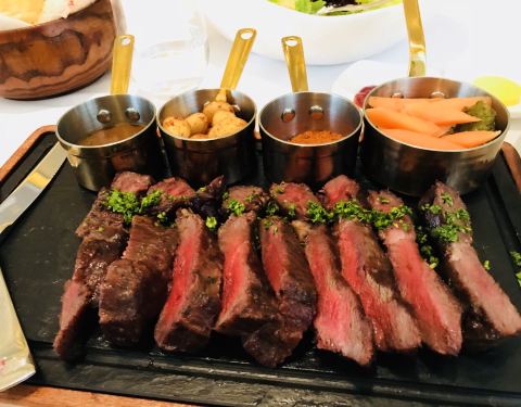 装修宽敞大气的西餐厅,牛排鲜嫩入味。