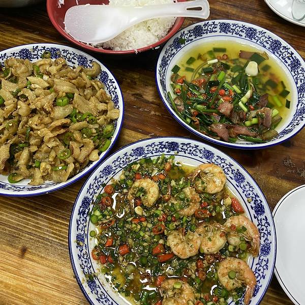 点菜都是直接在展示柜里挑选的,即点即做,所以也没有什么菜单。综合口味微微辣,会略油。比较推荐他家的基围虾,虾线都是直接挑干净了的,而且每只虾的个头都不小,虾肉扎实新鲜。 酸萝卜炒牛百叶搭配一碗白米饭...