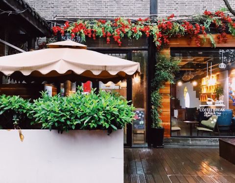 工作日下午到店人蛮多的不过好在店面特别大室外位置也很多,大家间距还是有的有咖啡、果汁、茶?服务也不错,点茶可以续室内有空调,室外有风,环境特别舒服整体比较安静,室外有吸烟适合闺蜜朋友下午茶或者办公~