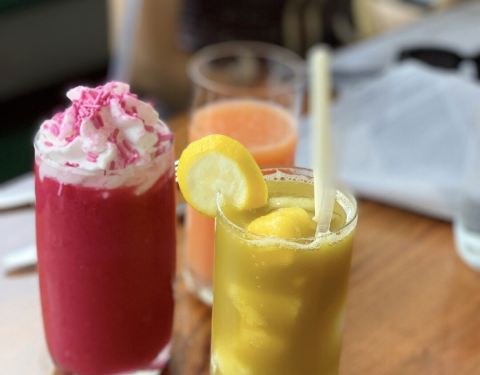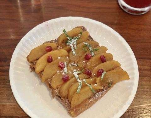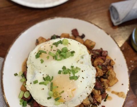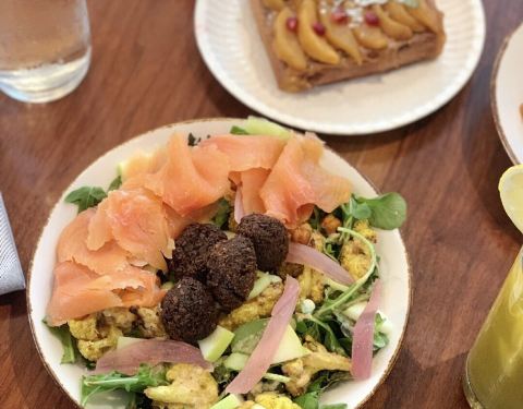 非常不错的餐厅~ 图一的corned beef hash,不要点!因为实在太咸了,说实话如果口味特别重的话应该是好吃的,炸土豆和软烂的牛肉粒放在一起并没问题,只是我吃了三分之一没吃下去。 图二的cauliflower & falafel salad 也有点咸,就连另加的三文鱼也是咸的,我觉得是他家厨房那天做的整体就偏咸。 图三的French toast ,这个实在太特别了!推荐!区别于传统的French toast,这个的口感有点像面包布丁,上面配的是甜甜的桃子,是为数不多我在dc吃完了会惦记着要来吃下一次的French toast! 图四的Caribbean shrimp & grits 也是推荐,两次去都点了,这个吃一份下来也是有点咸,但是新鲜的虾配上肉和土豆丁,下面铺着一层厚厚的细腻的土豆泥,吃起来超级幸福与满足! 图五六的avocado toast,这个造型和创意给满分,服务员说build your own ,配的小面包片口感脆脆的。整体很清爽,洋葱和辣椒的比例都不大,还原了牛油果本身的口感。在他家整体偏咸的风格当中这道菜实属不易。 图七的blueberry pancake,pancake 有点厚,并不是很甜,但是吃完没有什么记忆点,不如French toast 吃完觉得惊艳。 图八的chicken and waffle , 这个强推!他家的炸鸡真的外酥里嫩,虽然厚但是里面一点都不柴,鲜嫩多汁。炸鸡外面的酱是甜辣的,吃的时候我们三个人都哇哦了一下。底下配的waffle 很有意思,是玉米面的。我很喜欢的口感,虽然不像传统waffle 松软,但是吃起来是玉米面的香甜,配的另外两种酱蘸waffle 都很好吃,喜欢带胡椒的那个,配着玉米面恰到好处! 最后说他家的饮料,他家menu 上有很多饮料,我两次都喝了inka boost ,很奇妙,柠檬草加抹茶,喝起来是酸酸的抹茶但是很清爽一点都不违和,重点是里面给了一满杯的菠萝!有点失望的是这一杯的菠萝是冰冻的,吃起来有点冰牙,8刀一杯他如果能给我新鲜的菠萝我其实会感谢他的。粉色的是他家的shake,叫tropical ,是芒果橙汁什么的混合,口感还挺厚重的,酸酸甜甜。他家有很多鲜榨果汁的选择,不喜欢尝试新的点他家的鲜榨是不会出错的。