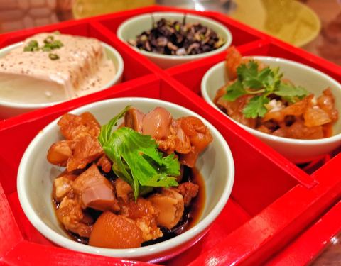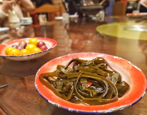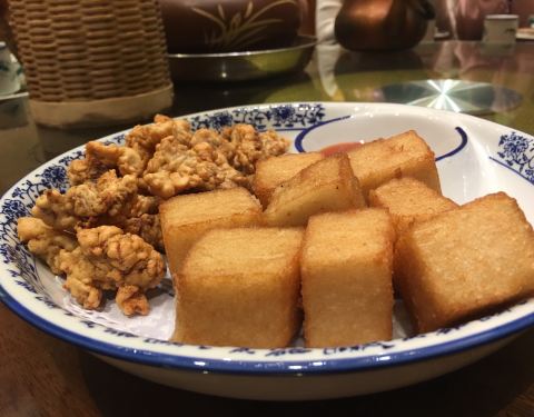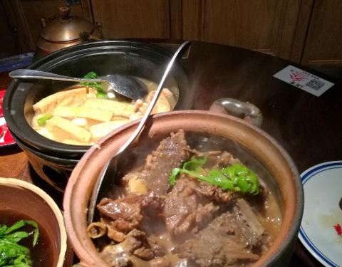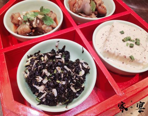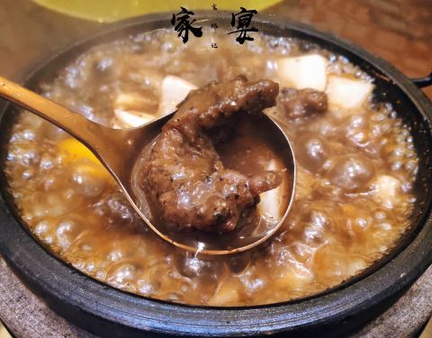 快过年啦,这家布置超有红红火火的氛围,一排排漂亮的火红灯笼随风摇曳,中国风的家宴二字仿佛迎风向我伸出了欢迎的小手[调皮] 店名叫做:【食锦记•家宴】,位置在开元盛世广场三楼,上电梯以后转悠半圈,多多注意大红灯笼就能找到哦。 晚上七点整,店内已经非常热闹,大厅的大小卡座、桌子坐了不少人,里面还有包厢,我来到了“春之声”,包厢可轻松容纳十人,略带复古又有质感的闽南家庭风格装饰沿袭了店内一贯的主题,处处点扣住“家宴”的“家”一字,连菜式也多是闽南人从小吃到大、喜闻乐见的家常菜。 「雨花石锅牛肉」 上桌一直咕噜噜沸腾着,一分钟以后逐渐飘出特别香浓的黑椒味,完全抢掉了开胃小菜的风头,导致我小菜还没吃就先把魔爪伸向了牛肉。滑、嫩、恰到好处的黑椒味,好吃哦[调皮] 「葱姜蒜焗水库大鱼头」 本人不爱葱蒜,但是这道菜还是称得上好吃。鱼肉质鲜嫩,和剁椒鱼头相比,最上面的小米椒其实只算得上是锦上添花的美化作用,鱼肉吃起来基本不辣,因此十分符合闽南口味,再次扣题,家宴正是要家的味道。摘除了辣的部分,保留了鲜、香、嫩的特质,用葱姜蒜很好地调和了淡水鱼的本味。 「老坛姜母鸭」 也是一道响当当的闽南家常菜,鸭肉紧实、入味,底下还有米雪糕,姜味非常适合冬日的味蕾。 「芹菜沙鱼羹」 看似清淡,喝起来惊喜。沙鱼的肉质比水库大鱼头的会紧实一点,芹菜的处理方式好像是裹了淀粉之类的,像有的肉片的处理方式,相当滑嫩。 「汽锅鸡」 这款卖相超拉风的汽锅鸡是本店第7613份!(如果我没听错的话)小哥会声情并茂地介绍一番,然后揭开汽锅上的封印,这只诱人的鸡就呈现在大家面前,鸡汤非常的香浓,肉质由于汤的做法是有一点点柴,所以这道菜的鸡汤特别受欢迎。而且闻到当归、党参、枸杞的味道就觉得特别养生。 「浓汤烫口老豆腐」 这道这道!我超喜欢的,这种越是简单的菜做得好吃才越厉害吧,过年期间大家一定会吃好多大鱼大肉的,到时候别忘了来一道老豆腐,清清口,豆制品的清香十分解腻。 「家宴萝卜饭」 这道开始放在旁边的小桌子上我就一直在觊觎了,用一个小锅下面火苗烧着,前面还摆着三个小碟子配菜,店员拌好后很贴心地给每人分盛一小碗,不爱吃米星人—我的一小碗都吃完了,米饭香糯,配菜添加了风味。 「四彩碟之海蛰头」 忙于吃肉的我没顾得上吃小菜,就尝了豆腐,这里面的豆腐冰冰凉凉很好吃。小菜碟和水果碟的碟子非常复古,别有韵味。