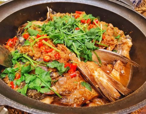 妈妈的味道,是每个人记忆里最深刻的味道。 食锦记·家宴,一个深耕多年的闽南私房菜老品牌,带你还原那最初的味道。 店铺位于泉州开元盛世广场里,海底捞隔壁。 「安海醋肉萝卜糕」 经典的闽南小吃,安海萝卜糕是闻名已久,外皮炸得酥脆,里头的萝卜泥软绵;精选上等猪肉炸的醋肉,味道更是不错。 「金牌汽锅鸡」 精选6个月的上等河田鸡,搭配党参枸杞,蒸足4个小时,鸡肉软嫩,汤头超级鲜甜味美,和在建水吃过的味道一模一样。 「雨花石锅牛肉」 滚烫的石锅牛肉一端上桌,就闻到了黑椒香味,上等的牛肉十分的入味,黑椒汁搭配米饭,更是一绝。 「葱姜蒜焗水库鱼头」 店铺新菜,先过油的葱姜蒜味道更加的香,腌制过的鱼头搭配葱姜蒜更是入味,鱼头份量十足。 「芹菜沙鱼羹」 芹菜?不说还真辨别出来。将芹菜裹粉去蒸熟,在搭配鲨鱼肉羹,味道鲜美无腥味,非常惊艳的一道汤。