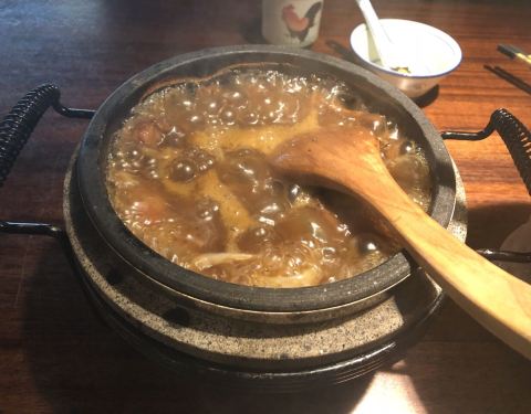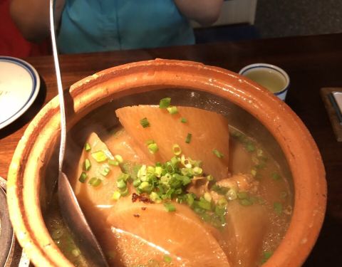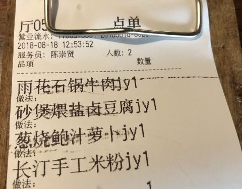 性价比很高,点了四个菜 鲍汁萝卜:很好吃,素菜吃出肉味,糯烂,很好吃; 煨盐卤豆腐:卖相一般,但确实很赞; 雨花石锅牛肉:招牌菜,很香; 手工米粉:超好吃。 素菜比荤菜好吃,主食比菜好吃。 俩人吃完全没吃完。