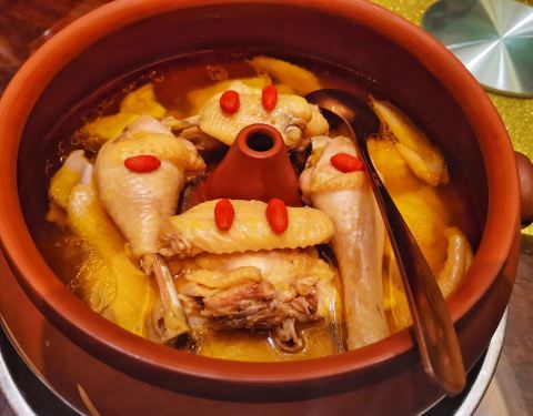 秘制千年汽锅鸡,采用云南建水的紫砂汽锅,煲制鲜嫩的河田鸡,辅以当归、党参、枸杞等,大补哟~!还有什么好吃的?来视频里接着看吧~#美食##泉州吃什么#