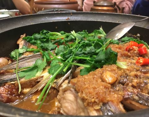 老坛姜母鸭,妈妈的拿手和田芋很好吃。位于泉州开元盛世广场的食锦记家宴