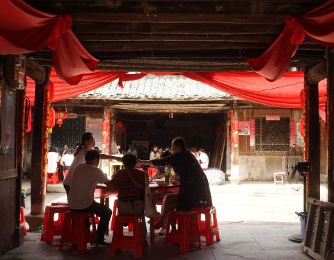 【位置】桃渚古镇的主街上,从西往东走,大概在1/3位置,虽然旧但还是挺明显的招牌在随风飘扬。 【环境】两百多年的宅子了,坐在廊下,装点着红灯笼,真有点喜宴的感觉。就是虫子有点多,甚至还招来蜜蜂。 【服务】郎大姐非常热情,用的都是最新鲜的食材,看我们都像看自己孩子一样和善关怀备至。 【菜品】报不上什么特别炫的菜名,都是家常菜,鸡是走地鸡,蛋是草鸡蛋,菜是凌晨菜农刚摘下送来的,用的是柴火灶。
