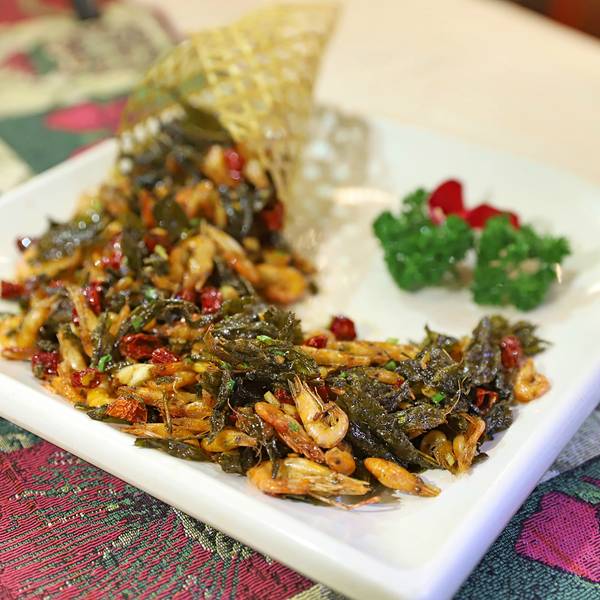 #七仙峰茶香虾#茶香虾,这道菜我第一次吃,顾名思义就是用茶叶去炒虾,对于我来说很新奇。选用上好的茶叶和小虾一起去炒制,以辣味为主,还有浓浓的茶香,非常下饭。