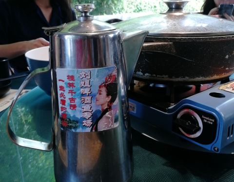 #点评召集令# 【关于啤酒鱼】 阳朔的啤酒鱼之所以能成为数一数二的一道特色菜,用料极为讲究,好吃的阳朔啤酒鱼一定要用新鲜漓江活鲤鱼加漓江水煮。 如果你觉得吃啤酒鱼就是要像在路边的那种大排档,端来一锅热腾腾的鱼肉,就着啤酒,一口肉一口小酒,大快朵颐。如果你是这样理解的话,那很遗憾的告诉你,你绝对不能品尝到啤酒鱼的美味。相反,好的啤酒鱼吃法很讲究。首先,环境可以是优雅小清新的感觉,就好像这次我们选择这家位于西街的刘姐啤酒鱼。 【来源典故】 刘姐啤酒鱼目前在桂林已经开了很多家分店,算是一家老字号了,其做鱼的酱料最为有讲究,从明朝初期便开始流传下来,并不断地改良,到现在已经历了八代传人。漓江的水,深山的中药,再加上本地特有的黑豆,三者浑然结合,出来的酱料浓郁飘香,养生功效也出奇的好。一时扬名乡里,成为了当地最受欢迎的特色酱料。 【鱼的做法】 大厨会在现场熬制,把配料和酱料一一放下去,食客可以看到这条鱼的制作过程,做到真正的吃得放心。最后盖上盖子,放上沙漏很好地把握煮制的时间,避免煮过了或者煮得不熟,时间大概是8分钟。 【其他出品】 #蜜椒排骨#蜜椒排骨跟我们广东吃的蜜汁排骨相差无几,我想应该只是叫法的差异。但是刘姐家的排骨一点都不腻,骨肉焦嫩香醇,味道咸甜,胡椒味香浓,一块接着一块停不下来。 #山海一家亲#山海一家亲是一道非常原汁原味的菜,吃完香浓的啤酒鱼再吃这个,会觉得味道非常小清新,芋头、花甲、木耳和腐竹等放在一起蒸,保留了食材本来的鲜味,很甘甜。 #七仙峰茶香虾#茶香虾,这道菜我第一次吃,顾名思义就是用茶叶去炒虾,对于我来说很新奇。选用上好的茶叶和小虾一起去炒制,以辣味为主,还有浓浓的茶香,非常下饭。