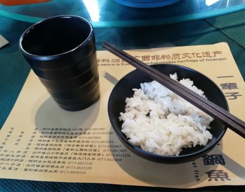我是跟团去的,感觉所以的团都是去这家吃饭。人超级多,我们是导游安排得好,下了船直接过去就开吃。我们在吃的时候,外面还有很多很多团在等位子。那个桂花酒是导游安排的,香香甜甜挺不错的。中间那个黑乎乎就是啤酒鱼,我觉得不好吃,不推荐。
