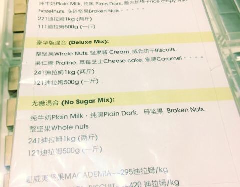 土豪国的土豪巧克力试吃都是一整块的!刚开始都不好意思吃… 三个服务生叫我试吃…心里很想吃但还是拒绝了两次~ 价格倒是比想象中便宜不少。 服务生多了点,还有专门的中文导购员。 迪拜桑拿天,不敢买怕带回上海糊了… 所以打算去机场买,但是据说机场散装的没有!只能一个礼拜后看缘分买了!