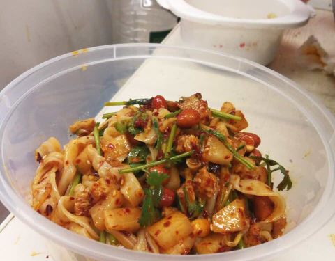 - 凉皮超级好吃 同事介绍过来吃了一次 每次在红旗广场附近逛街都忍不住来吃上一碗 今天干脆来大份的 哈哈