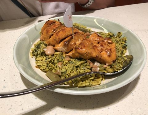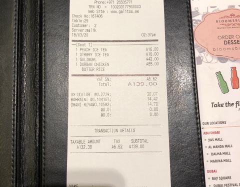 阿联酋封国第一天。我俩去了阿提哈德塔后就走过来Marina Mall逛逛,沿途的海岸线很美很蓝[调皮]非常值得走走,最好是黃昏日落时候[害羞] 这家餐厅主打鸡,所以我刚就点了两个饭和两杯东西[色] [薄荷]环境: 干淨卫生,放心 [服务铃]服务: 小哥下单和上菜都很快 「Durban Grilled Chicken」烤鸡烤得很好吃啊!而且可以选择一个配菜! Galibowl : 虽然不是烤,但都很好吃!喜欢 Ice tea 的话 个人喜欢点与不点,解渴的! 旅行结婚第212天第12国阿联酋🇦🇪阿布扎比