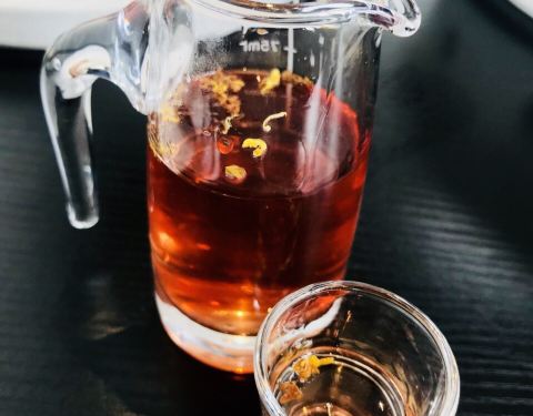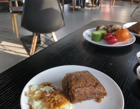 老板自酿的杨梅酒,要颜值有颜值,要味道有味道,像我这种不喝酒的人都忍不住碰了三杯! 洗沙羊尾超级惊艳!红豆蒸熟,然后用纱布滤去豆壳及杂质,这个过程叫洗,高度粉碎的豆沙不粘不腻,配上豆油、素油、松仁、糖金桔,口感清爽绵密,加上用蛋清打到发泡后所做的饼皮,江南茶点的精致与讲究,真真是见识到了。