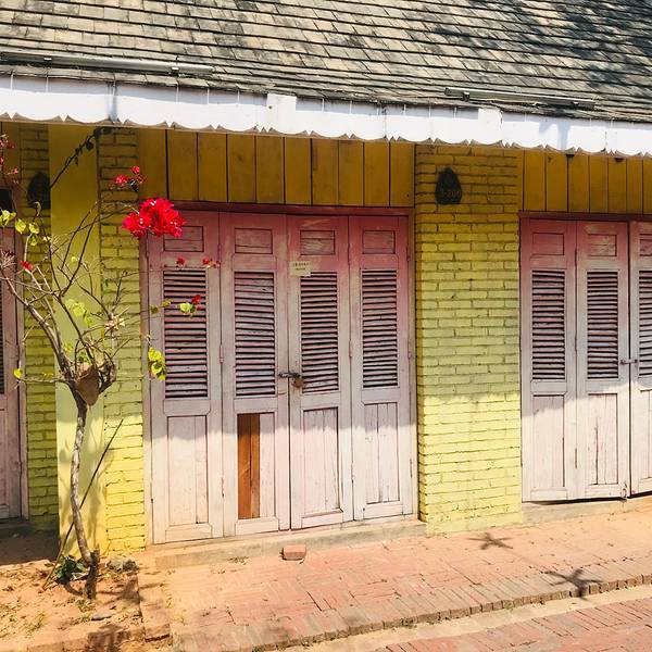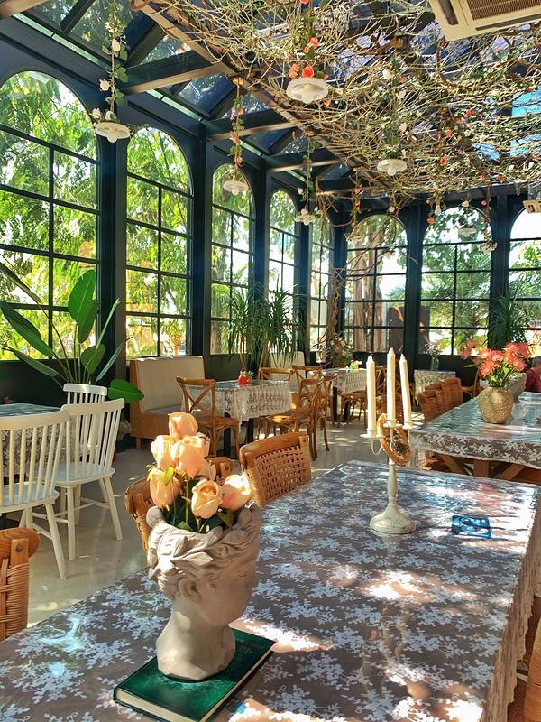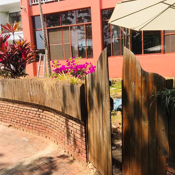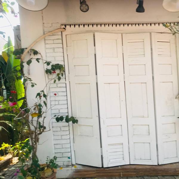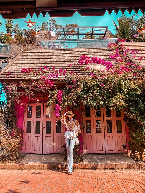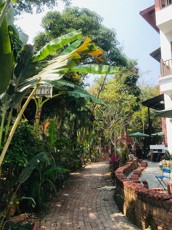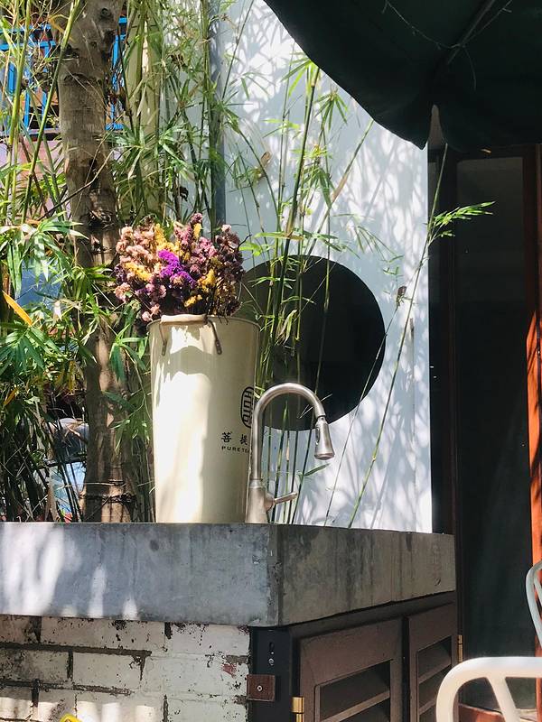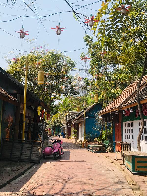 昨天晚上是在上面看到的赶摆街,当时只是觉得这个名字挺好玩,今天从茶馆去吃饭,阴差阳错的走到了这里,感觉跟晚上简直是两个世界。晚上的时候这两边全是各种小摊,热闹的很,白天冷冷清清的一个人都看不到,而且特别特别适合在这里拍照。就算这路不太好走,全部都是红砖铺的小路,花姐开着小电车,简直跟开了震动模式一样,差点把我和大莹子颠出去。到了春武里之后还要再等一会,我就绕到了后面的一条小路上,这里也隐藏着很多有情调的小店,超级的美。