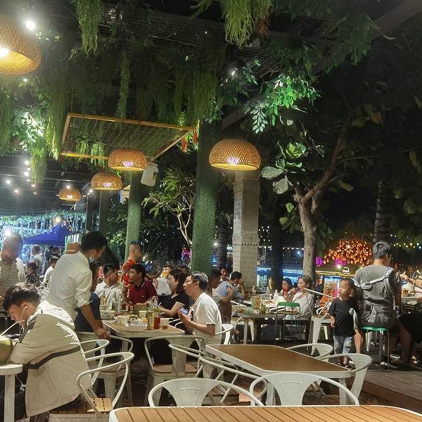 水果餐+烧烤宵夜,非常棒!晚上的赶摆夜市非常热闹,找一个湄公河边的位置,做下来吃吃宵夜,喝喝啤酒