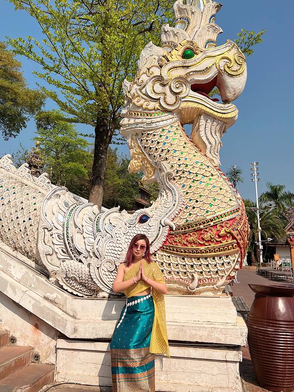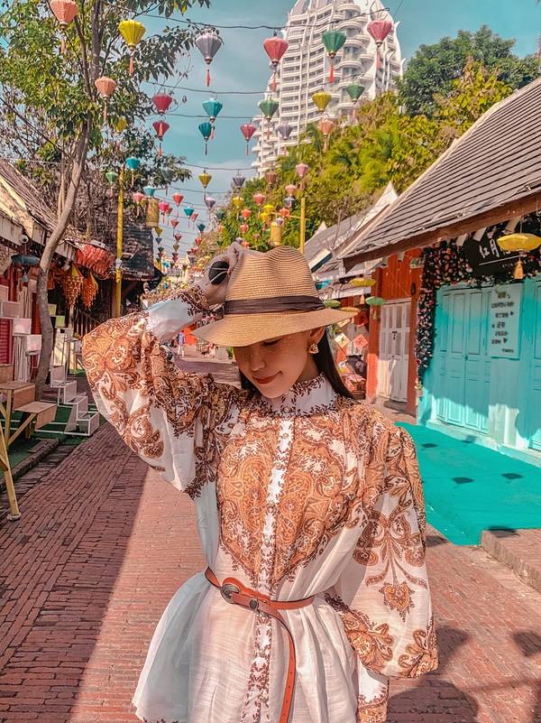 往里走就到赶摆街了白天的赶摆街,小店都关门的,更适合拍照。五颜六色的墙,拍照超好看在赶摆街就发现了卖泰服的,问了下价格40一套,感觉太便宜了(攻略里都说夜市50、70左右一套)裙+抹胸+批纱=40 腰间配饰=25 各种颜色保证挑花眼,年龄大不喜欢露的还有带袖子的其他款可以选择直接买下穿上开始拍照沿着赶摆街一路拍着走着就到了晚上星光🌟夜市的地方,这个点还没有开摆,提前认路了大太阳拍完照片,一个字热!回酒店洗澡🛁休息一下,准备晚点星光🌟夜市!