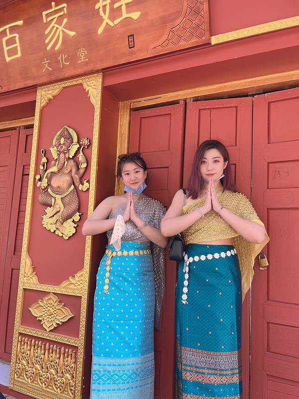 往里走就到赶摆街了白天的赶摆街,小店都关门的,更适合拍照。五颜六色的墙,拍照超好看在赶摆街就发现了卖泰服的,问了下价格40一套,感觉太便宜了(攻略里都说夜市50、70左右一套)裙+抹胸+批纱=40 腰间配饰=25...
