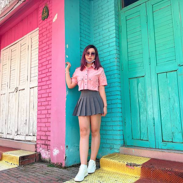 白天的赶摆街,小店都关门的,更适合拍照。五颜六色的墙,拍照超好看。直接买下穿上开始拍照