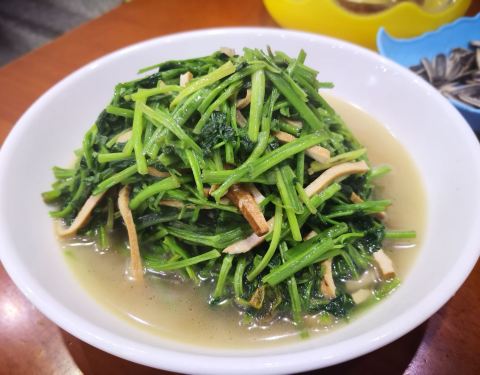 观音菜就是一种野菜,蒜泥做法,新鲜得很。希望还有机会再来吃。尝了一口,的确很鲜嫩,几碗下去,暖肚沁胃