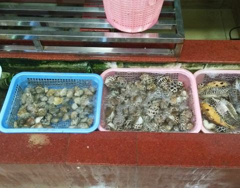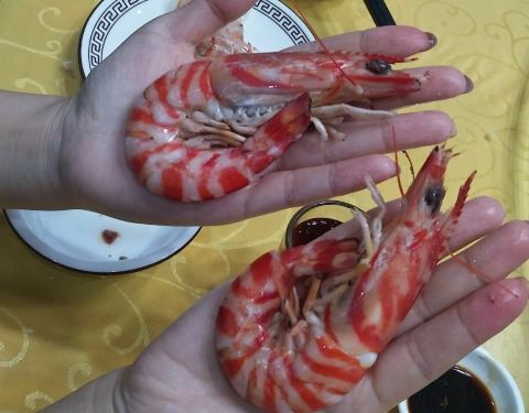 到达泉州时是晚上九点多,从高铁站再租车到惠安县城里已经将近十一点。我们肚子早罢工了,于是先来到离所订酒店不远的港边路上找东西吃。此时大部分的餐馆都打烊了,仅剩这家张记在营业,看来也没得挑!老板倒是十分客气,竟给我俩安排进大包厢坐!这里海鲜种类蛮多的,选了好一会我才做好决定,点了只两斤的大花蟹和以前没吃过的九节虾,还有这里有名的蒸鱼卷!老公点了份三文鱼刺身,本来还想再蒸一条魔鬼鱼的,但老板娘劝说:魔鬼鱼太大了,你们俩肯定吃不完的!看老板娘如此实在,老公就改点了海蛎煎。点完后上菜速度很快,味道也非常好!特别是九节虾,很新鲜个头也够大,拨了壳仍有很多肉,一只只吃到嘴里相当满足!还有海蛎煎,虽说以前吃过,但对比之后就发现这里做得最好吃,份量也最多!最后俩人消费了五百多块,虽说不便宜,但感觉还是比较值的!