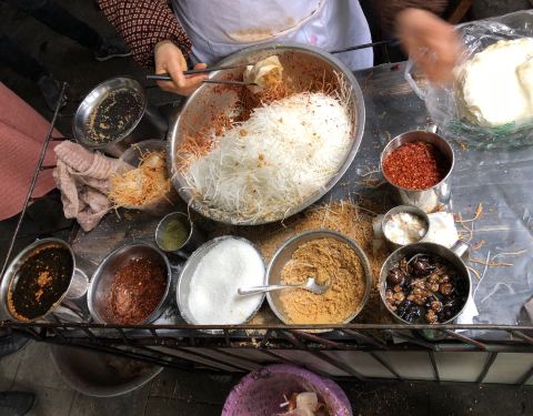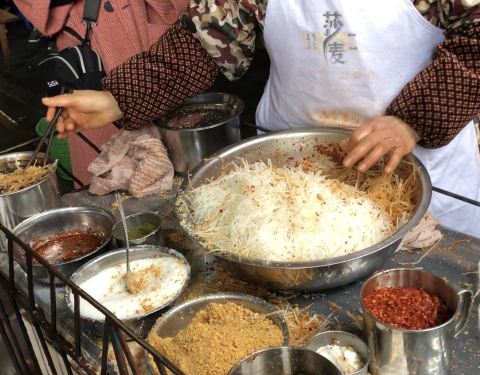 许四孃一人独撑店前的摊位,动作非常麻利,同时耐心回答我们的问题,前面排的当地食客也热心给我们介绍