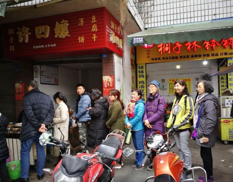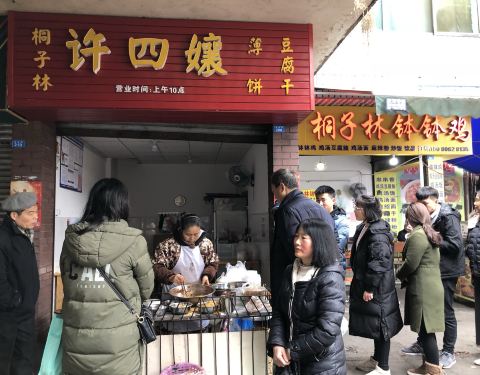 去犍为旅游,搜了排名居前的美食,桐子林许四孃薄饼豆腐干也是当地著名小吃啊。上次去犍为,早上离开时还没开门,这次一定要吃到。到了犍为先去这家,好在排的队还不算长。许四孃一人独撑店前的摊位,动作非常麻...