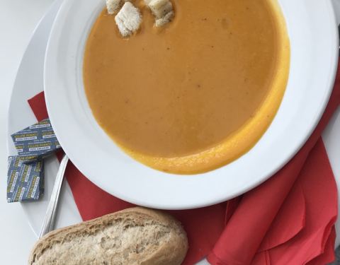 大家可以看图。室外风大的可以吹跑人了哈哈。但是到了这里温暖如春。点了一碗热汤,一人一份主餐。我和先生都很喜欢哈哈。