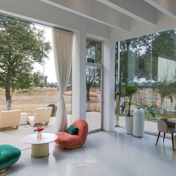 【苏州湾体育公园:尽情享受运动带来的轻盈度】苏州湾体育公园涵盖生态修复、景观游赏、旅游度假、户外休闲、运动健身等功能,这对于喜好运动、健身爱好者而言,绝对是个户外胜地。公园南北长约1300米,东西宽约850米,长达10公里的慢跑步道贯通整个公园,占地约1460亩,是吴江区“1058”工程重大生态文明项目之一,太湖新城民生实事项目之一,拥有足球场、篮球场、网球场、羽毛球场、休闲健身点等。该公园内,还有一个不能错过的网红咖啡馆【LIM CAFE】 。这不是一个简单的咖啡馆,而是集咖啡、用餐、聚会为一体的综合性咖啡馆。不论是在挥洒过汗水的运动后,还是在滨水漫步的午后,都可以在此休憩、用餐和聚会。望着窗外的自然,喝着手里的咖啡,品味着细腻柔软的甜品,“运动与文艺”有了不同的思索。大厅内,结合原有木梁设计的白色波浪形状的吊顶,俏皮地倒挂在天花板上,映衬着窗外的天空和云朵,俨然生成了一幅画中画,随意又不失精致。而不经意间的二三盆绿植,有趣地点缀了这片纯白的空间。如果你会弹钢琴的话,千万不要掩藏。在这一片静谧的世界里,弹奏出属于你的浪漫。