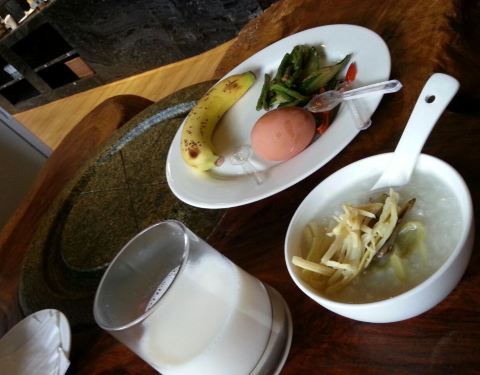 住在这里的酒店带双早,大堂在二楼,西餐厅在一楼,旁边是泳池,再穿过泳池过了马路,就是椰林和海滩了,环境不错。食品不算很丰富,但中西点心糕点粉面粥水果都有,吃饱吃好还是可以的。