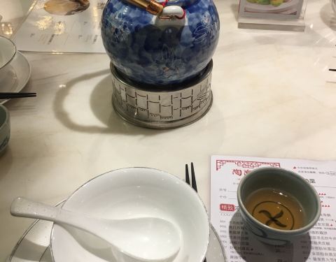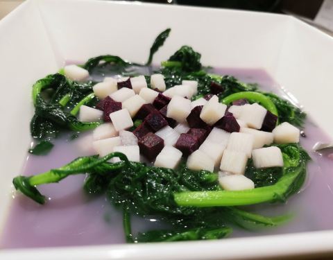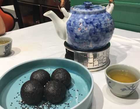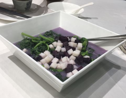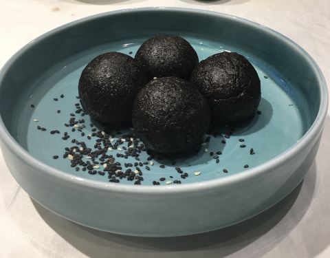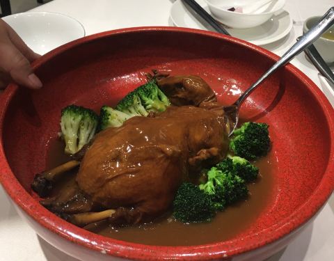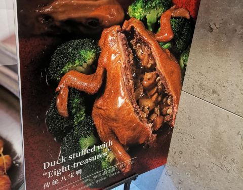 今日过去食午餐试了两款新野,一个系八宝BB鸭,一个系脆皮黑芝麻艾糍丸。 八宝BB鸭78元,味道唔错。鸭皮好食但肉太软烂,比较适合老人。八宝中以薏米为主,莲子、栗子只是象征性地放了一两粒。貌似八宝只是个虚数,但值得一试。 脆皮黑芝麻艾糍丸21元4个,作为餐后甜点相当好。颜值在线,口感外表微脆,内软糯,中间流心。推荐。 淮山紫薯皇帝菜36元。之前已经食过觉得十分喜欢,养眼又美味。这次莫不犹豫选了它,没有令我失望。 午餐时间开了一个小厅,里面环境特别好。服务是一如既往地令人满意。