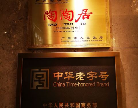 广州老牌子了,如果不知道带什么特产的话,吃完可以顺手拎一份陶陶居的节奏~ PS:特产强烈推荐鸡仔饼,超级好次的特产了,带起来也很方便~ #环境# 这家分店楼下等位,两楼用餐,相对会稍微安静一点~ 整体的风格还...广州老牌子了,如果不知道带什么特产的话,吃完可以顺手拎一份陶陶居的节奏~ PS:特产强烈推荐鸡仔饼,超级好次的特产了,带起来也很方便~ #环境# 这家分店楼下等位,两楼用餐,相对会稍微安静一点~ 整体的风格还是比较现代的,桌子的可选性非常多,店内也有包房之类的~ #销魂卤水乳鸽# 最为推荐的一道菜品了~ 不似烤的乳鸽,卤制的更加入味~ 肉质属于非常鲜嫩而紧实的口感,一口下去回味无穷~ #一口酥豆腐# 嫩豆腐被裹起来炸至金黄色,一个个的看着很诱人~ 搭配的是甜辣酱,一口下去酥脆可口,非常开胃~ 非常适合女生吃了,一口口的很秀气,而且这样做的嫩豆腐也不用担心夹不起来~ #陶陶居大虾饺# 真的真的真的是超级大的虾饺了~ 一个虾饺咬开里面整整有3个虾仁~ 各个晶莹剔透,非常饱满~ 大虾饺当之无愧~ #百搭酱皇蒸凤爪# 这边的凤爪蒸的更加入味~ 酱皇的味道很不错,咸淡适中~ 凤爪虽然很酥烂,但是仍然有着那么一点韧性~ 感觉吃的是满满的胶原蛋白了~ #明炉香滑靓葡挞# 高高的蛋挞是第一次吃~ 感觉内容相当丰富了,起酥特别赞,绝对是香滑的口感~ #顺德大良双皮奶# 双皮奶端上来还是温温的,感觉和果冻的口感有点类似~ 但是更加厚实有质感~ 超级推荐这边的乳鸽啦,绝对要来的一家店了~