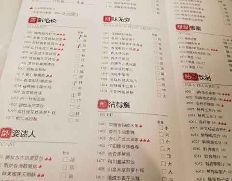 环境还可以哦有现代设计风格也参了古代的建筑风格,茶还可以,点心可能下午了虾饺不新鲜的口感,叉烧不够蜜汁瘦肉有点硬硬的,热菜双鲜搭配色彩可以菜爽口脆但是海鲜油炸了不是很美味有点不新鲜口感,紫薯山药蔬菜口干色泽都不错,好吃,菜有菜香,薯有薯甜,山药有山药脆脆。