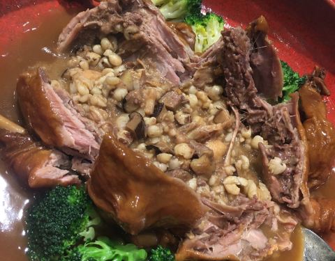今日过去食午餐试了两款新野,一个系八宝BB鸭,一个系脆皮黑芝麻艾糍丸。 八宝BB鸭78元,味道唔错。鸭皮好食但肉太软烂,比较适合老人。八宝中以薏米为主,莲子、栗子只是象征性地放了一两粒。貌似八宝只是个虚数...