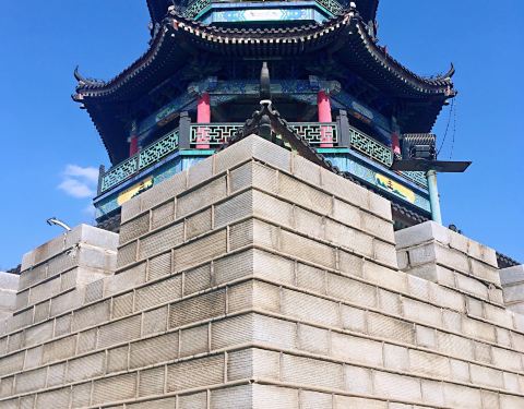 午饭过后,前往厝石山公园,来厝石山公园的目的只有一个,那就是来看魁星楼。厝石山公园是一个开放的公园,免费参观。公园前的广场上有很多老人在聊天、晒太阳、健身、下棋,总之就是好多人啊。工作区的建筑也很好看,古色古香的。 公园内一共有四个景区,正常游玩需要两三个小时。琉璃影壁,可惜当地人都在附近打牌,我只能拍一个背面,旁边还有个可恶的自行车!魁星楼周围由城墙环绕,可以走左侧的台阶,也可以走右侧的坡道,不过坡道的角度很大。拾阶而上,魁星楼慢慢变得清晰起来。 环绕魁星楼一圈,逐渐走下台阶,下面是靖安祠,也不能入内参观。另一侧岩石之上是一只栩栩如生的石虎雕像,也许是守护着魁星楼吧。