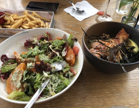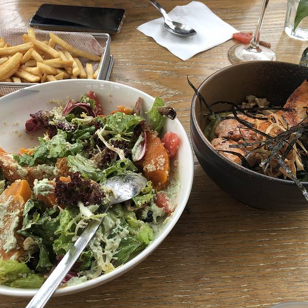 这家餐厅在长宁龙之梦区域人气还挺高的,据说食材很新鲜,并且很利于身体健康,餐厅内装饰还不错,还有室外就餐区,菜品的种类多样,点了一份色拉,薯条和主食,量还挺大的,但是口感上面有点不习惯,有点像西餐...