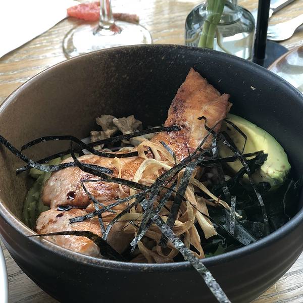 朋友请我吃中午饭,首先这里的环境非常好,在来福士广场8楼露台,可以看景,另外老板还养了羊驼和兔子,小孩子来一定很高兴。这里的饮食大都是有机,非常健康,我们点了三文鱼粗粮饭和鳕鱼粗粮饭,加了草莓汁,很...朋友请我吃中午饭,首先这里的环境非常好,在来福士广场8楼露台,可以看景,另外老板还养了羊驼和兔子,小孩子来一定很高兴。这里的饮食大都是有机,非常健康,我们点了三文鱼粗粮饭和鳕鱼粗粮饭,加了草莓汁,很好吃,营养满满✌️
