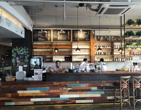 万禾都市农场餐厅位于上海长宁来福士的8楼,这家店是上海一位电视主持人开的,他们家的蔬菜都是自己种植的,所以很健康,菜品都是创意菜,味道和口感还不错,餐厅的环境布置的很小清新,很适合朋友聚餐。