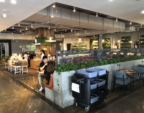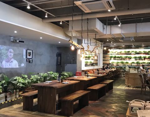位于长宁来福士的万禾都市农场在刚开业的时候我就过来吃了,当时来这家餐厅用餐的人还挺多的,因为这里菜品的原材料都是自己种植的,所以很健康,菜品的种类很多样,但我觉得香料放的有点多,所以有些人会吃的不习惯,餐厅还有室外区域,在室外用餐是一个不错的用餐环境。