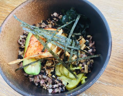 这里的饮食大都是有机,非常健康,我们点了三文鱼粗粮饭和鳕鱼粗粮饭,加了草莓汁,很好吃,营养满满✌️