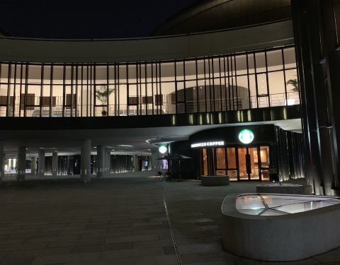 江苏大剧院夜色中很安静,是散步休闲的好地方。