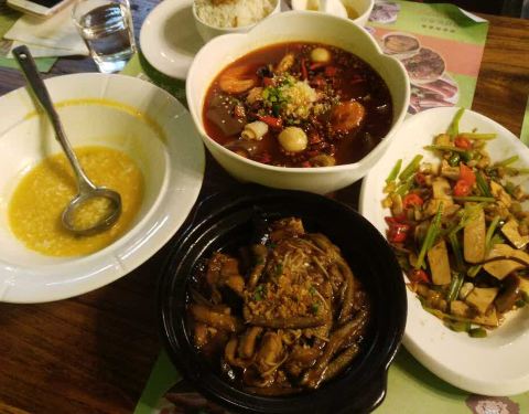 - 环境特别棒,黄金皮蛋娃娃菜没有蛋黄儿,酸菜鱼像是现成的鱼放到汤里,虫草汤里没有虫草,醪糟汤圆还...