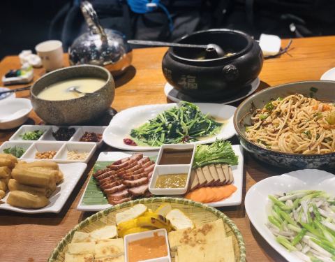 从缅甸回北京,在昆明转机,作为吃货,寻找美食是第一位的。这家主打传统滇味的云南汽锅鸡。 店内装修仿造了昆明老街老房的建筑韵味,有种昆明市井感,就连店里热闹的氛围都像是在还原喧闹的街坊气氛,第一次来就对环境没有陌生感和拘束感。 招牌汽锅鸡用古法单锅蒸制,突出原汁原味,汤色清亮、油而不腻。 第一次来推荐当地几个特色菜:鸡枞凉米线拼盘、福照烤肉、涧水豆腐汇、稀豆粉油条、现蒸火腿。