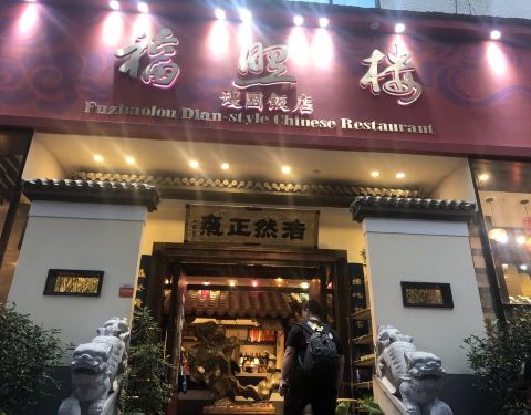环境与位置:位于万达广场的底商,很轻易就可以找到,从外面看内部环境就是典型的中国风,木质桌椅,印制有特定中国图案的餐具,一层是开放式菜盘点餐,都是经典的云南本土菜,会令人挑花眼哟 汽锅鸡:来云南怎么能错过汽锅鸡,分有不同大小的锅型,一般来说2-3人一份中锅完全可以满足。鸡汤味道鲜美,可以向店员要一包云南产的三七粉放入汤内,虽然味道偏苦,但这种吃法可以舒筋活血,非常养生 烤豆腐:云南特色菜,与包浆豆腐不同,整个豆腐口感饱满,美中不足就是菜品过咸 干椒牛肝菌:云南以菌类食品出名,很多珍贵的菌类植物只在云南生长不可养殖。牛肝菌是比较出名的菌类之一,价格偏高,不过营养价值高。福照楼采用干炒方式,辣椒提味,不过也是偏咸 穿心莲:餐前开胃菜,清凉爽口的绿色食品 另外手工的酸梅汤一定要尝一下,酸酸甜甜的非常爽口且除辣解油腻。
