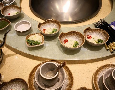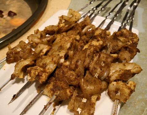 开业期间搞活动,各种券收集。位置挺好找的,敦化路和汉口路交界口那里,门口停车位不是很多。人多电话预约的单间,稍微有点小。首先在一楼选锅底,要的羊排,然后称重,旁边的师傅铡刀伺候成小块。这次来主要体验烤肉串,羊肉,猪五花,腰子都要了些。首先羊肉确实熟的很快,口感还不错,店家秘制的底料还算可口,外面有各种调料,就是不吃,只要吃了秘制料就要每人收个小料费。烤肉串感觉不是那么惊艳,主要新店开业各种优惠,排队的人不少。单间大多数房间没有窗,显得有点闷,大姐服务不错,就是人少了忙不过来,好多东西成立自助服务。