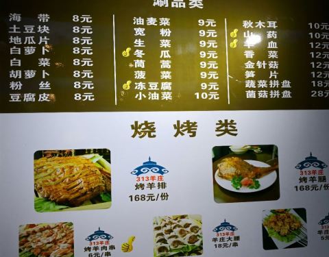 青岛敦化路上的这一家313羊庄,还是在青岛小有名气的一家店,因为他家的羊肉做的特别的专业,而且门头和装修看上去都特别的大气,请客吃饭,还是很有面子的呢,炖羊排,羊汤还有,各种羊肉做的菜品,非常不错呢!